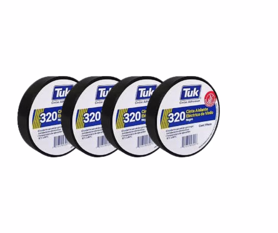 La cinta de aislar Tuk 320 de 9 metros es una cinta de vinilo de uso domestico diseñada para el aislamiento de cableado y conexiones eléctricas sencillas. Su material de PVC le confiere durabilidad y resistencia, además de ser retardante a la flama.